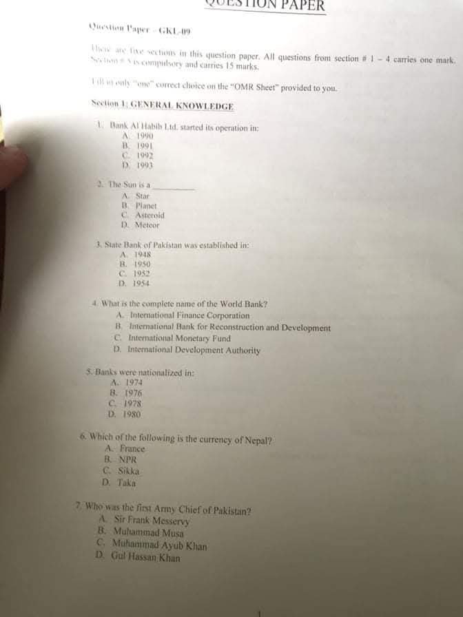 Bank Al Habib Graduate Trainee Officer (GTO) Past Papers