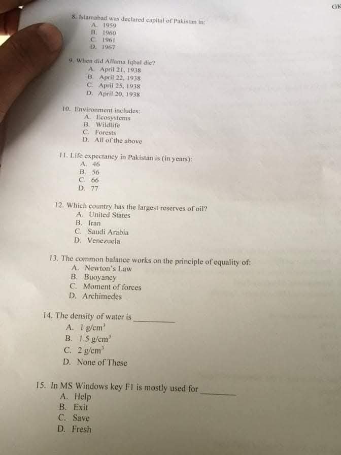 FPSC Past Papers
