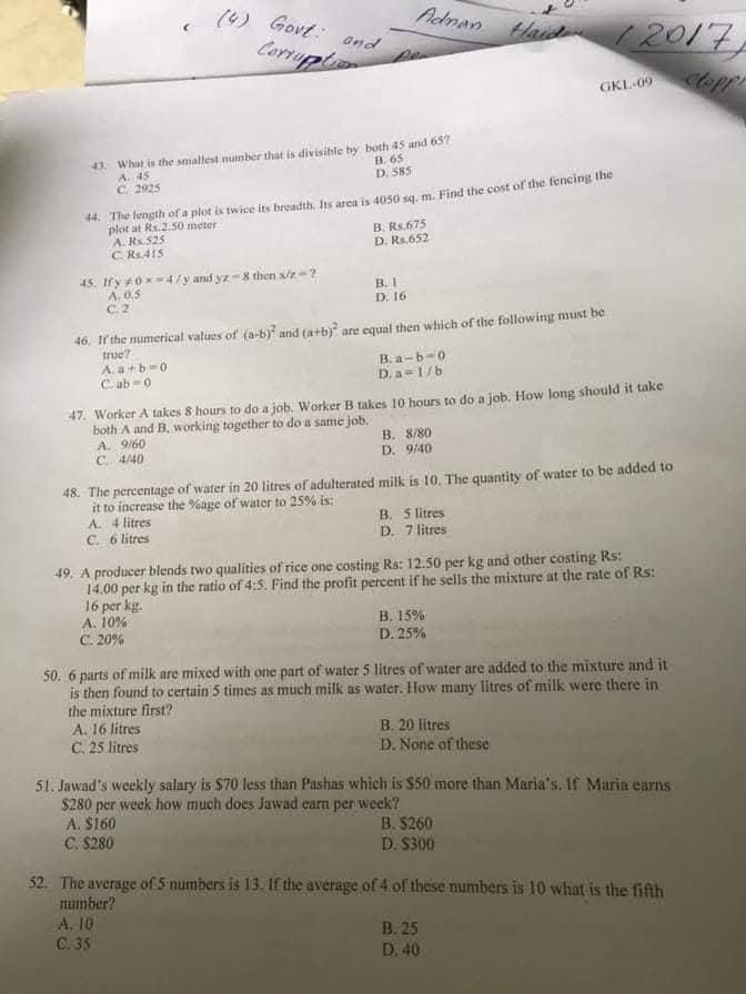 PPSC Past Papers