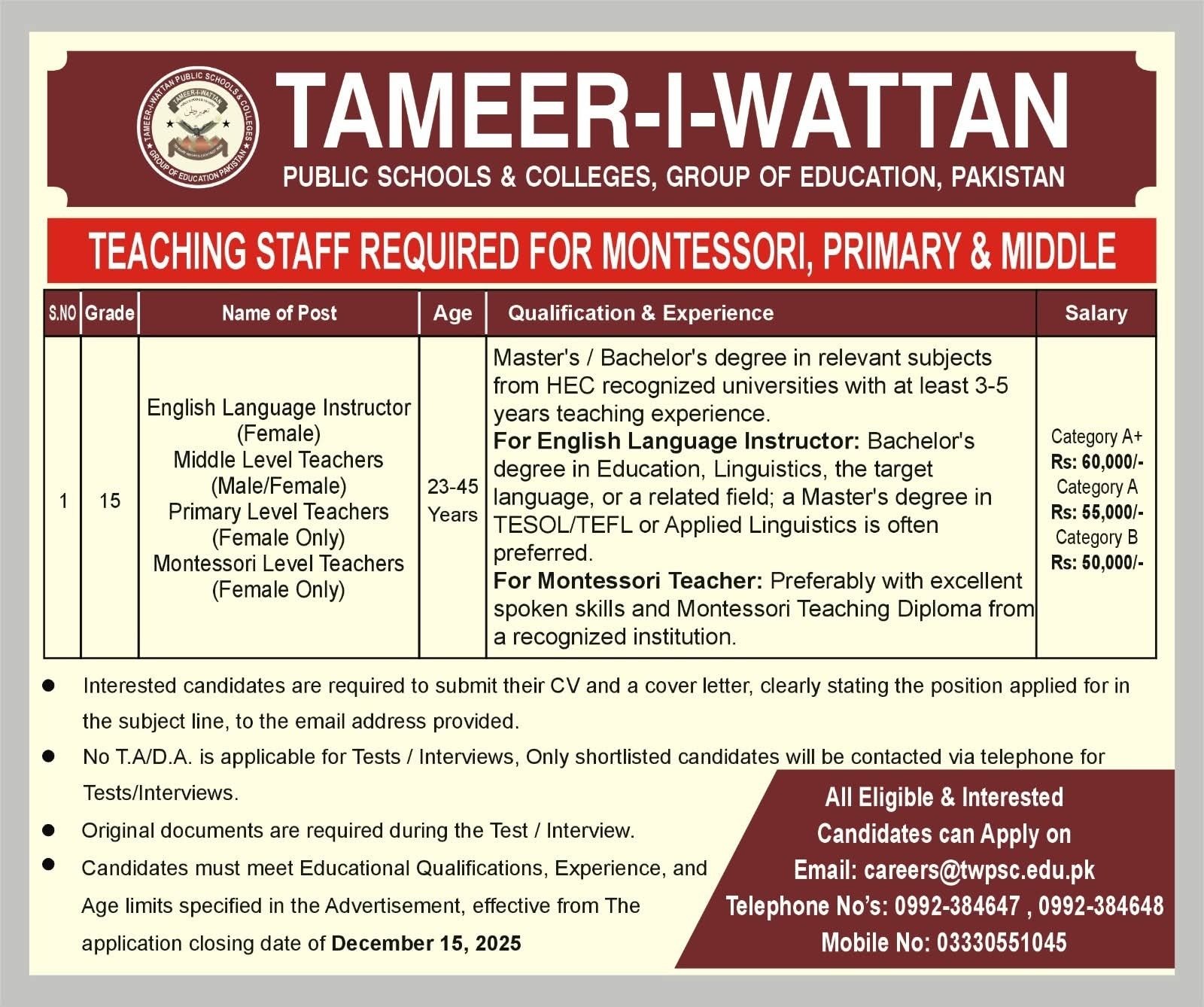 Positions Available: