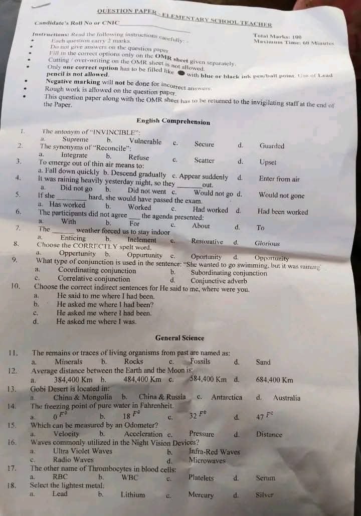 PPSC Past Papers