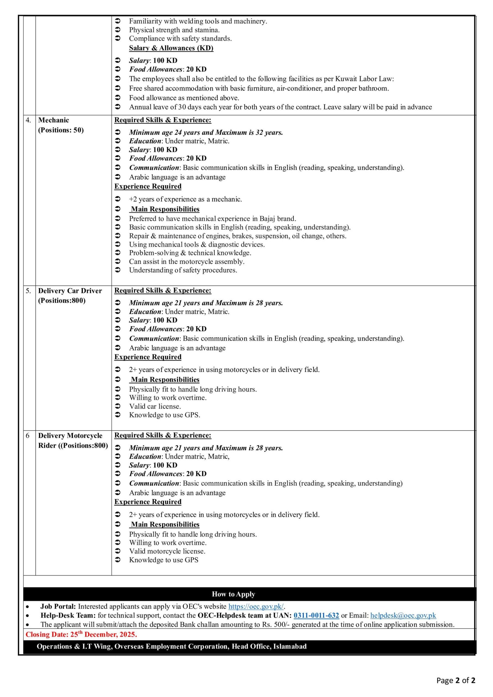 These vacancies are published through an official OEC advertisement, ensuring transparency, legal protection, and worker safety. Pakistani candidates from different educational and professional backgrounds are encouraged to apply before the closing date.