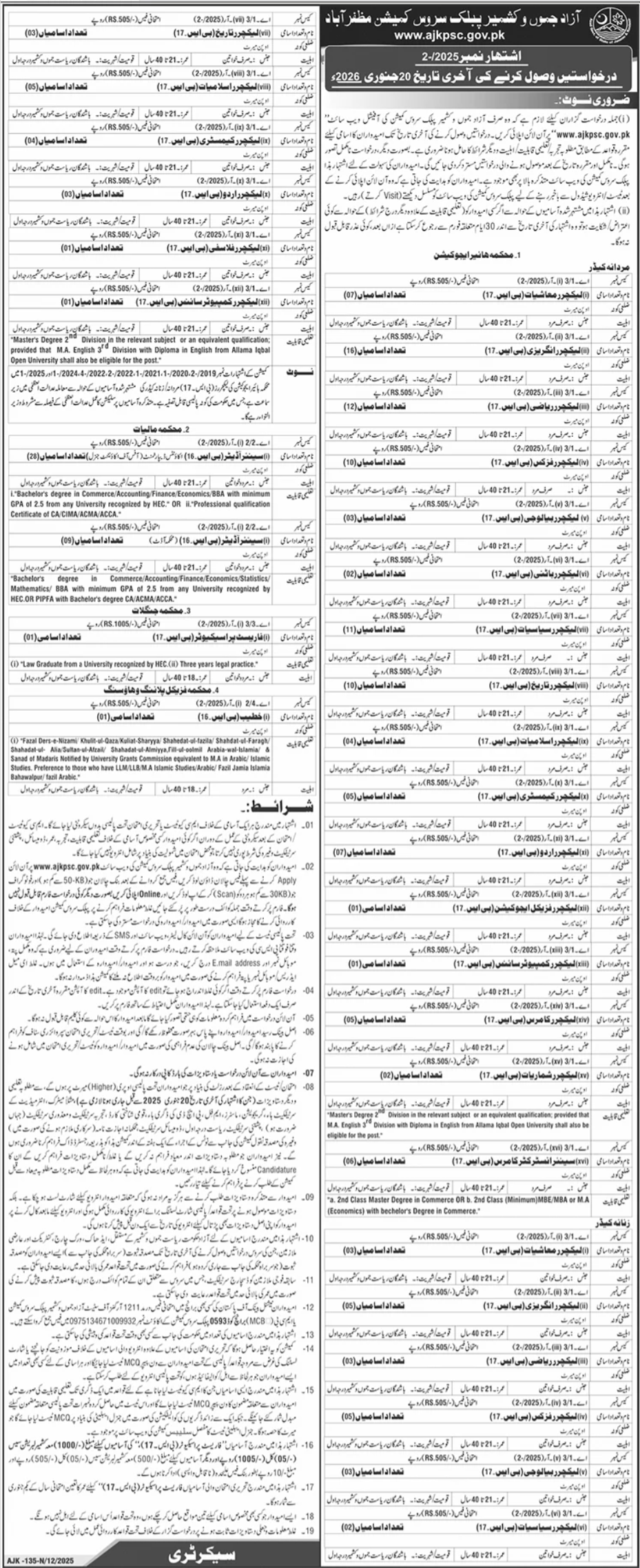 Azad Jammu & Kashmir Public Service Commission AJKPSC latest Government Management jobs and others can be applied till 20 January 2026.
