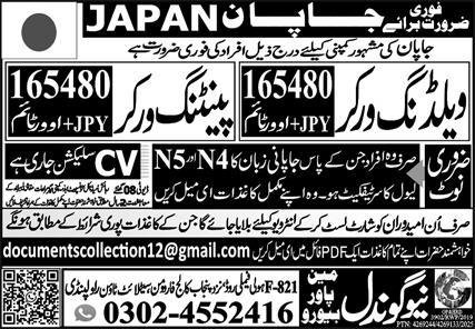 New Gondal Manpower Bureau invites applications for job positions advertised in the daily Express on December 5, 2025, for the following vacancies in Tokyo, Japan: