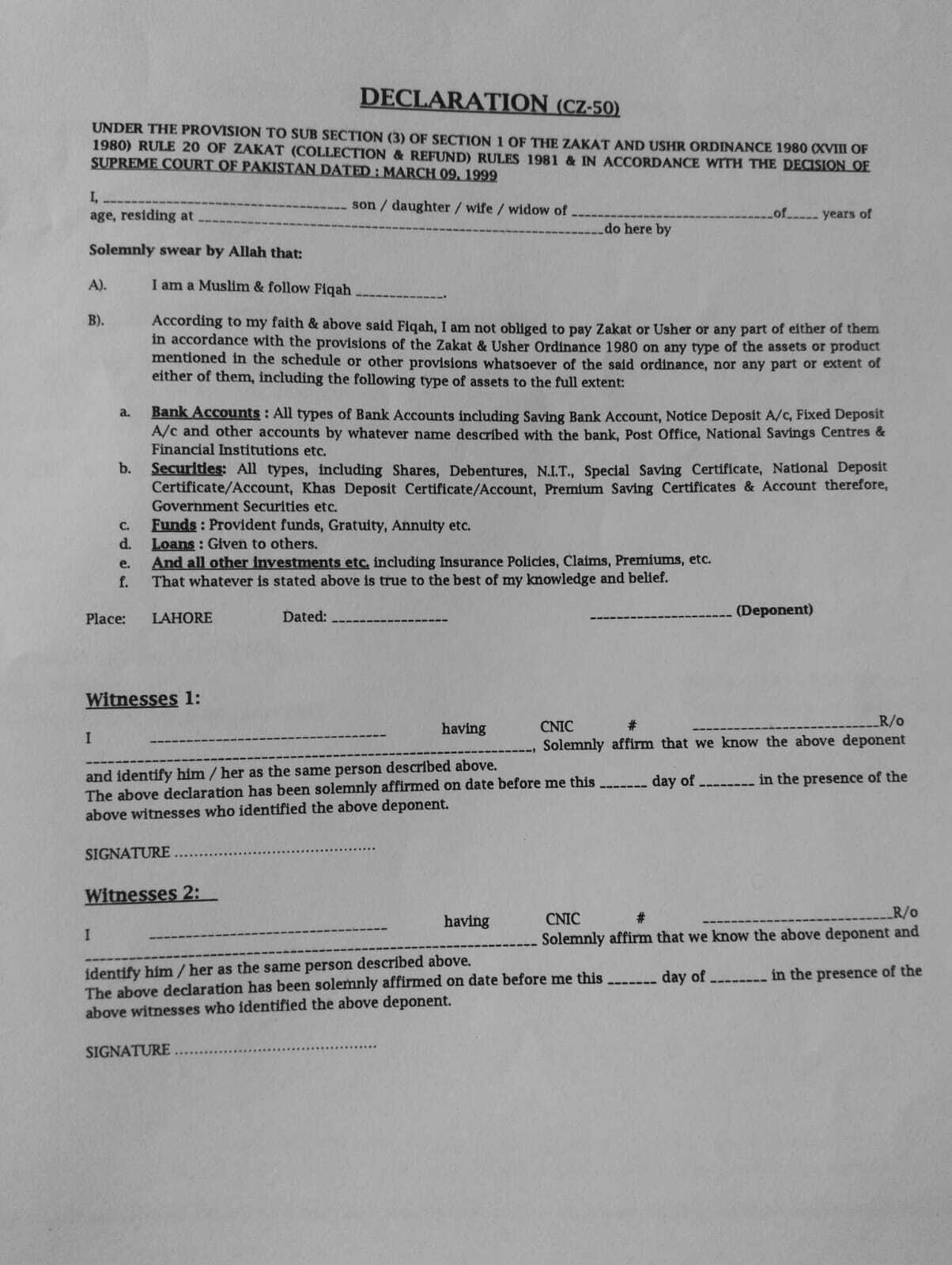 MCB Bank Zakat Declaration Form For New Jobs Hiring 2025