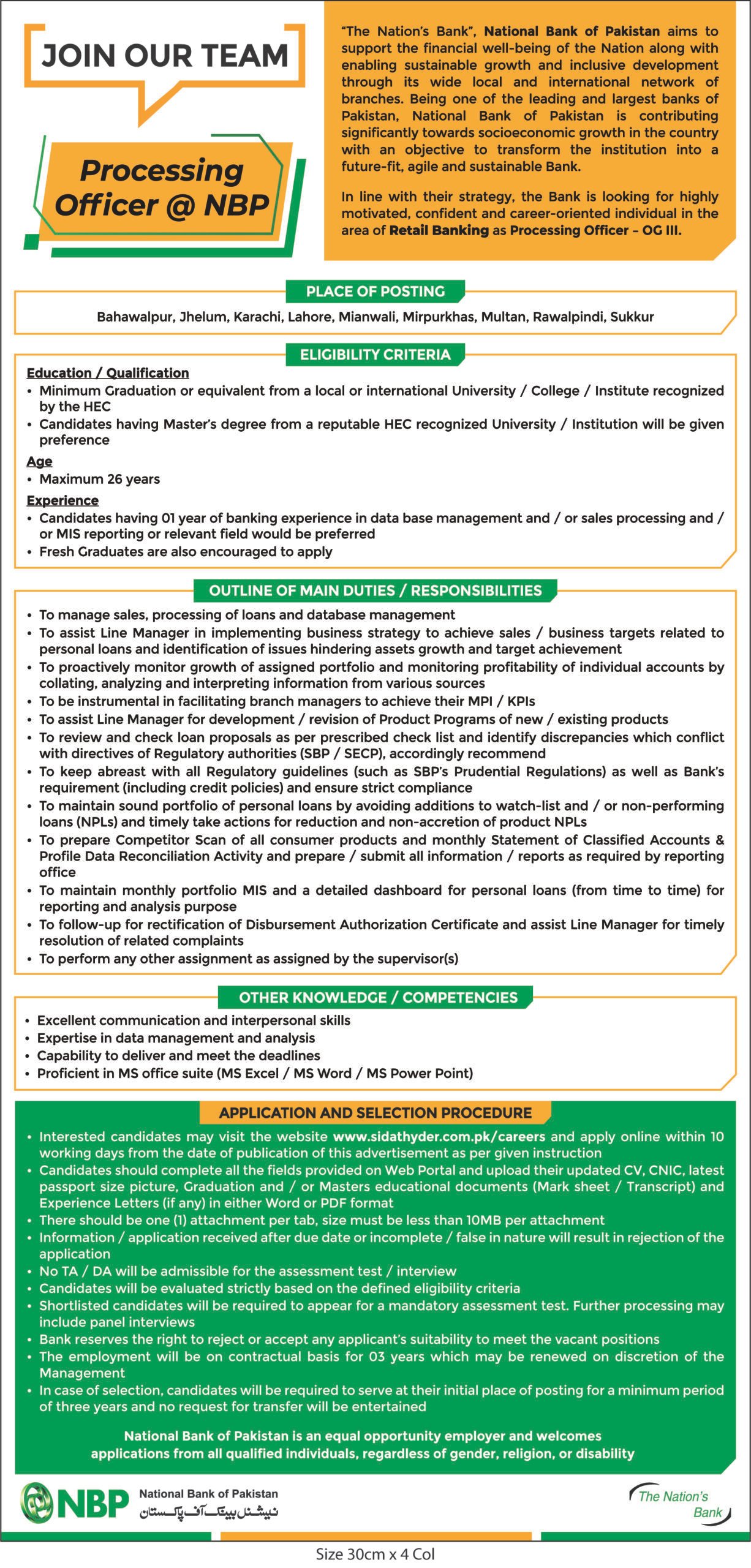 National Bank Of Pakistan NBP Processing Officer OG-III January Jobs 2026 For Fresh Graduates Apply Online
