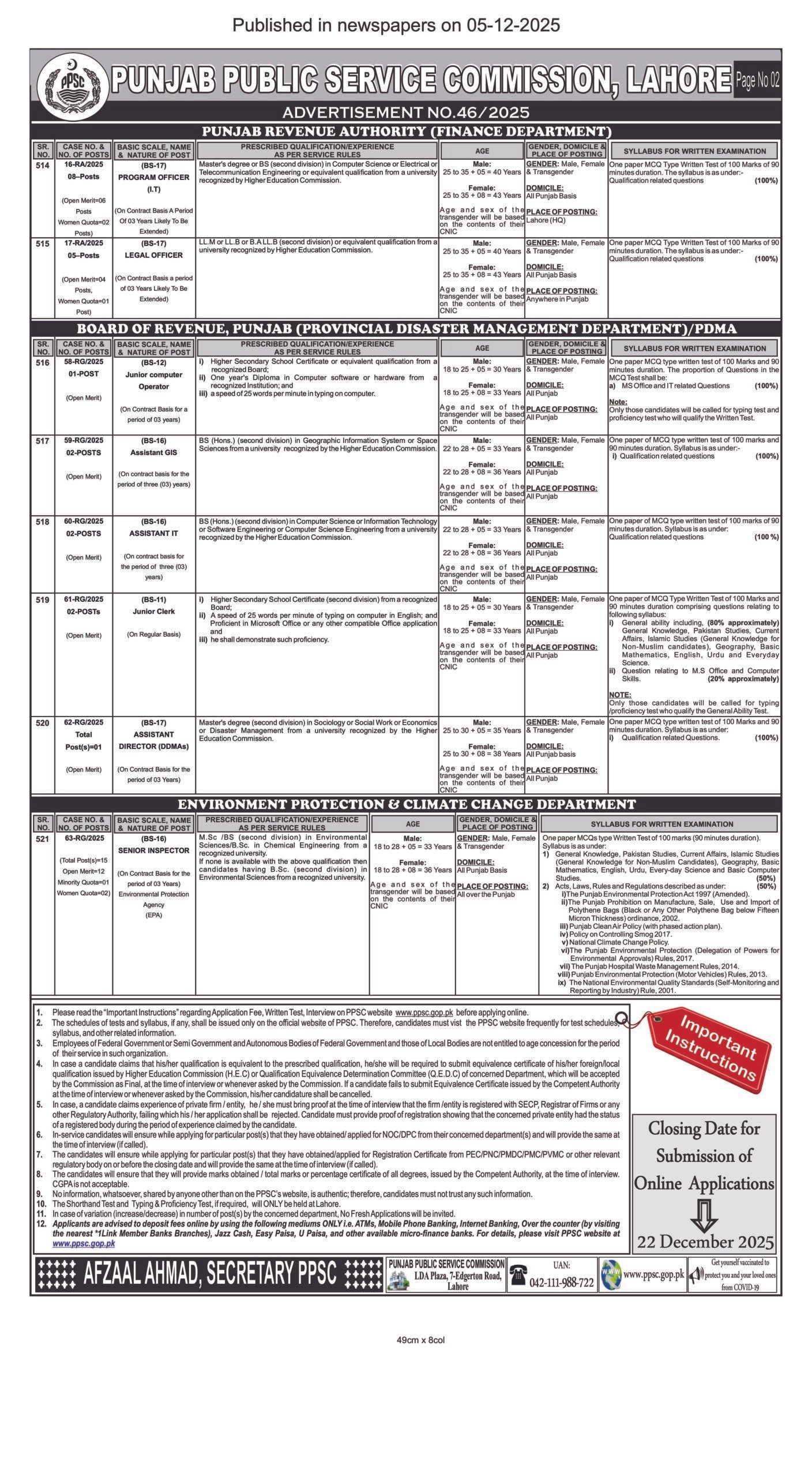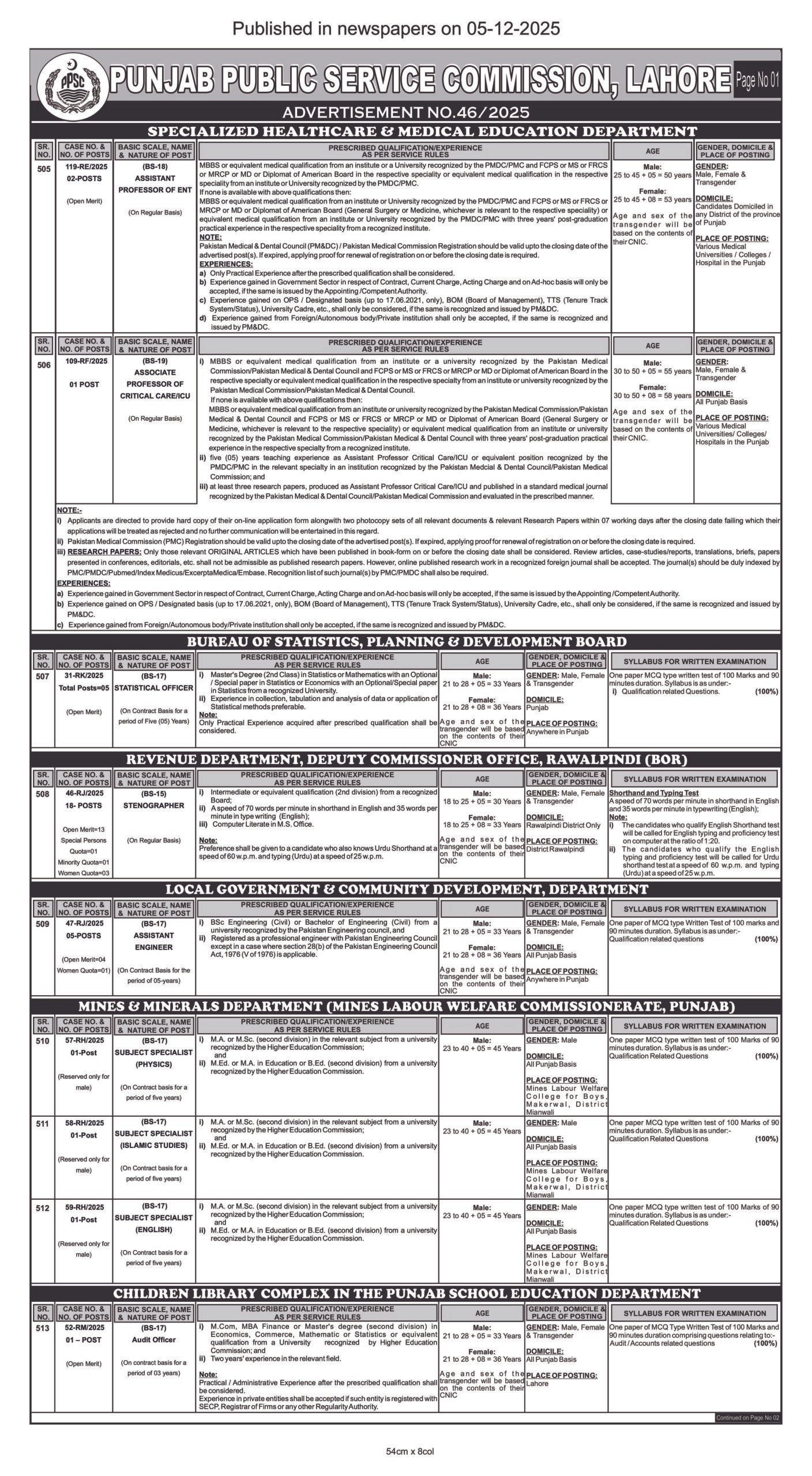 PPSC Announced Jobs For (SST) Subject Specialist Teachers In Punjab Advertisement No. 46/2025