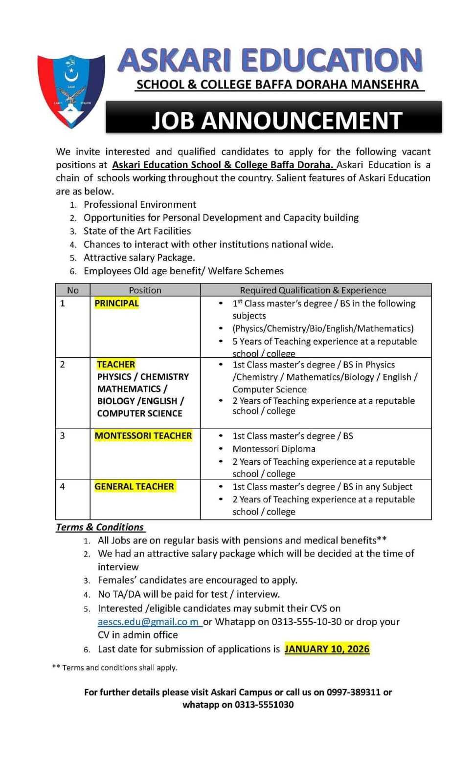 SST Teachers Jobs 2026 Announced In Askari Education School And College Mansehra January Latest